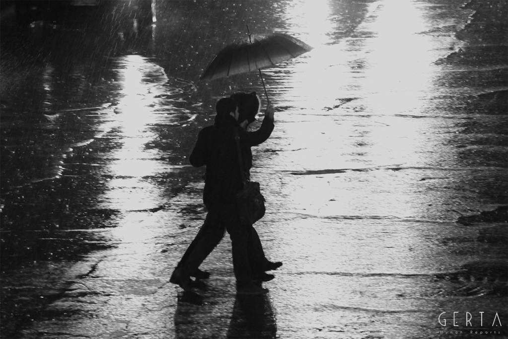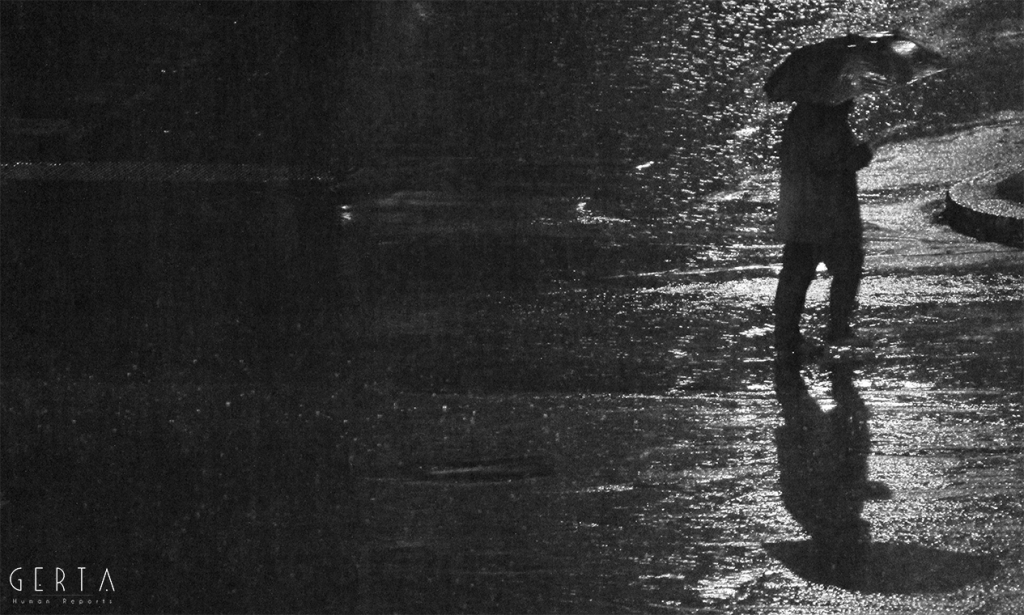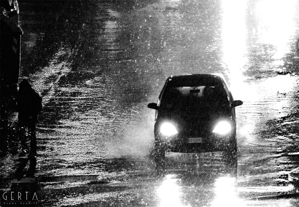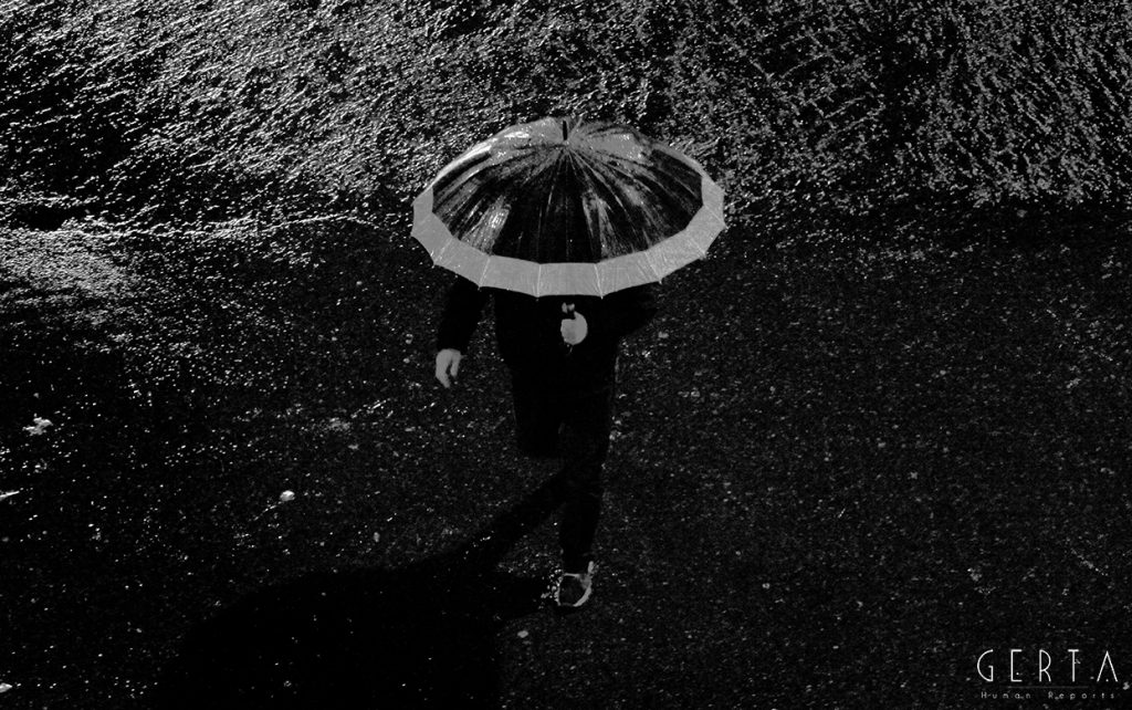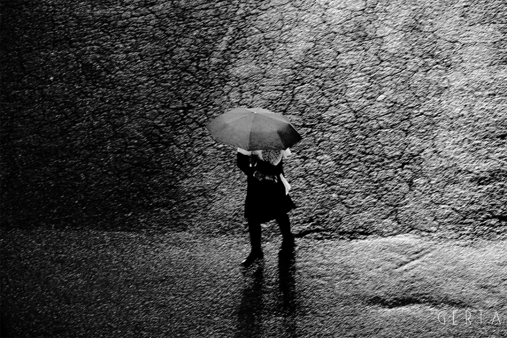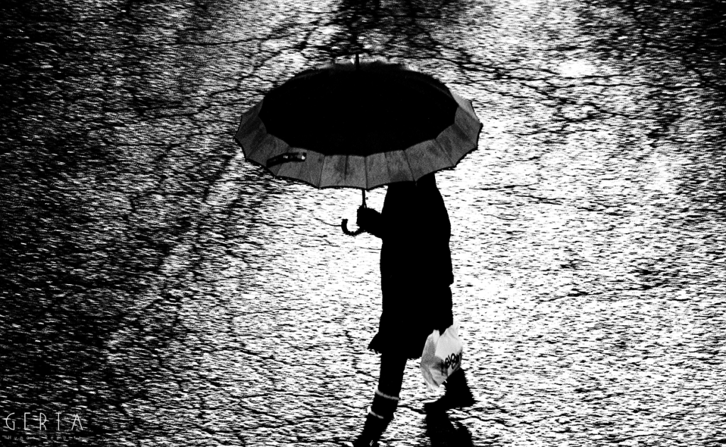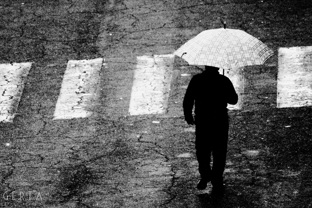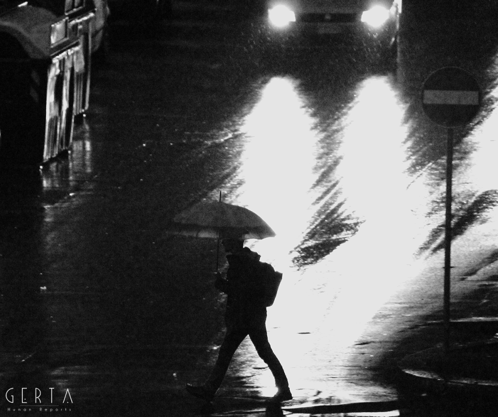 Un giorno casuale, di una vita casuale e distratta, di fronte ad una finestra, in un crepuscolo piovoso, su una realtà a me estranea eppure tanto evocativa della condizione prima dell’essere umano, quale è la solitudine, l’istinto mi portava a cercare la lente dell’inconscio, dell’impercettibile percetto, dell’insensato senso dell’infinita finitezza sensoriale: l’obiettivo. Iniziavo a scattare, dalla medesima posizione, all’inizio nella medesima inquadratura. L’umida umanità sola passava come in una rassegna del molteplice-uno di fronte alla mia mira e scattavo come volessi vedere dentro, come volessi, dall’esterno della mia condizione visionaria, impossessarmi di quella fragilità. Sentivo un irrefrenabile impulso a guardare attraverso la macchina, una fame di percezioni, di storie, di racconti… di nulla. Una condizione in cui mi sono trovato per mesi, riscoprendomi avido di ritornare a quella finestra, a nuove piogge, a furti di emozioni solitarie. Sentivo una metamorfosi interiore; sempre più, di fronte a quella finestra, sentivo invertirsi il flusso della mia coscienza: l’esterno e l’interno a me, grazie al filtro del mio obiettivo, coincidevano, si mescolavano, si contraddicevano. Il furto a poco a poco era ricambiato, le luci, le ombre, l’invisibile a occhio nudo mi rubavano ciò che credevo mio, liberandomi.