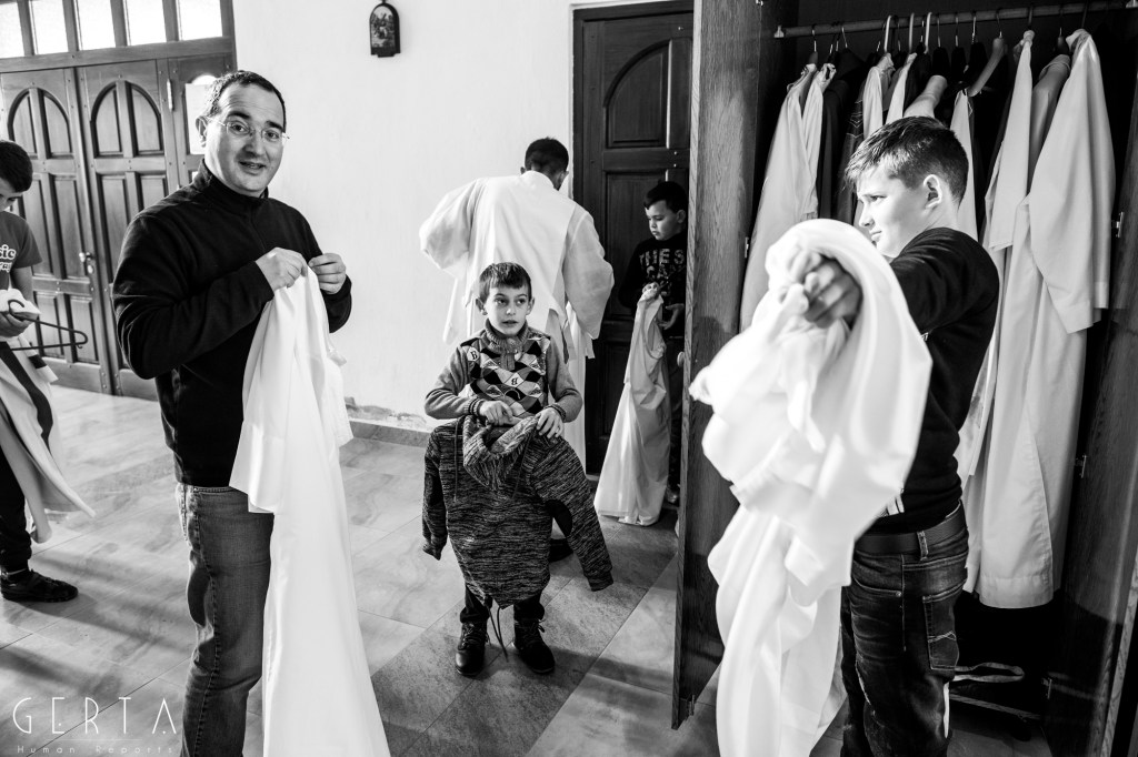Padre Alessandro è un Rogazionista che vive il suo ministero sacerdotale come missionario qui in Albania. Accompagnandolo, capisco quanto sia forte il suo legame con questa terra. Il suo servizio giornaliero è fatto non solo di esercizio spirituale, ma anche di lavoro nei campi, di assistenza agli animali, di manutenzione agli edifici, di assistenza alle famiglie e di attività educative con i ragazzi. In questo suo servizio, rivedo forte la figura del “pescatore di uomini” che seguendo la vita buona del Vangelo trasforma un lavoratore come Pietro nel padre della Chiesa Universale, quella chiesa costantemente in viaggio sempre pronta a sporcarsi le mani.