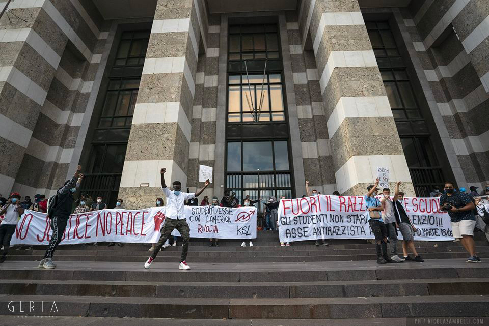 A Brescia si è vista una piazza giovane, meticcia e conscia delle sue parole d’ordine. La componente migrante in questa città è elevata e, grazie soprattutto al lavoro dell’Associazione Diritti per Tutti e delle comunità migranti, determinata e politicamente attiva. Da qui partì nel 2000 la lotta contro la sanatoria che, allora come oggi, escludeva migliaia di persone dalla regolarizzazione: 50 giorni di occupazione di Piazza Loggia dietro gli slogan “permesso di soggiorno per tutti”, “sanatoria per tutti” e “diritto di esistere”. Dieci anni dopo, ancora nel contesto di una lunga mobilitazione contro una nuova “sanatoria-truffa”, la città fu teatro della stupefacente occupazione di una gru del cantiere della metropolitana, in pieno centro. Era il 2010, in sei si arrampicarono a venticinque metri di altezza e ci restarono per giorni, esponendo uno striscione con la scritta “Sanatoria”. Sotto la struttura, centinaia di antirazziste, antirazzisti e migranti diedero vita a un presidio permanente. Anche allora, la richiesta era semplice: diritti e dignità per tutte e tutti, “no justice, no peace”. Oggi, in Italia, una nuova, problematica sanatoria è alle porte, e in tutto il mondo il movimento “Black Lives Matter” ha riportato sotto i riflettori la questione razziale nascosta sotto il tappeto dell’Occidente.
