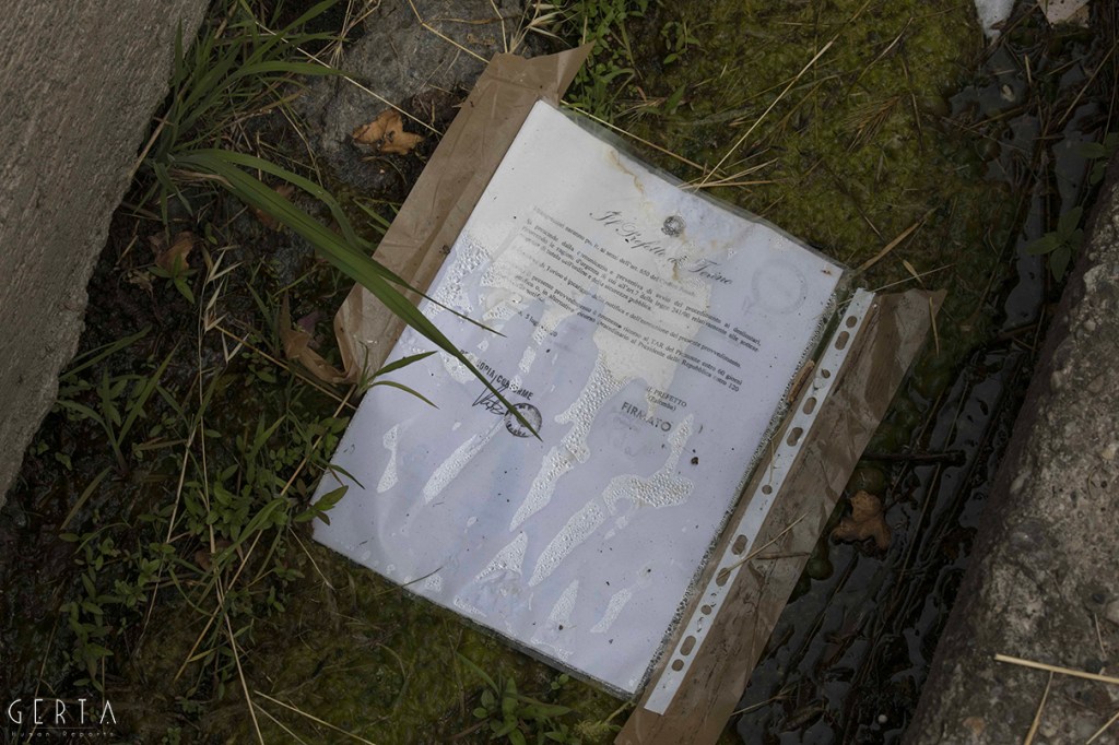 Il cartello con stampata l’ordinanza del Prefetto di Torino che vieta di percorrere il sentiero posto alla fine delle case del paese di Giaglione “vola via portato dal vento”.