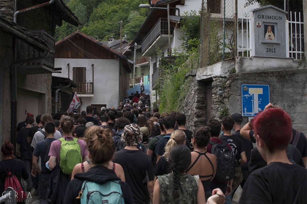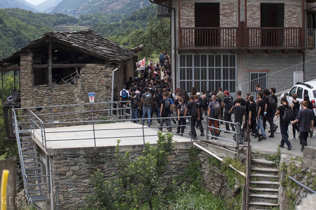 Intorno alle 14:00 del 18 luglio, più di cinquecento persone, per la stragrande maggioranza giovani e giovanissimi alla loro prima esperienza in Val di Susa, si sono riuniti al campo sportivo del paese di Giaglione.