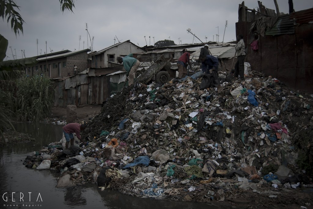 Mathare è una di queste enormi baraccopoli abitata da 600 mila persone. Il problema più evidente riguarda lo smaltimento dei rifiuti. Essendo infatti prevalentemente privato e non obbligatorio, quelli che vivono nelle baraccopoli buttano la spazzatura davanti alle proprie case o nel fiume, quasi inconsapevoli dei danni che questo può provocare alla loro salute. La maggior parte delle persone che vivono in baraccopoli bevono l’acqua del fiume, la usano per l’alimentazione, per l’igiene personale ecc… Lo stesso per quanto riguarda i prodotti della terra che è fortemente contaminata da ogni genere di rifiuto, dalla plastica alle batterie. Le fogne sono a cielo aperto e i bambini come tutti i bambini del mondo non sanno che giocare con la poltiglia che si trova lì dentro può essere letale. In questo quadro però non tutti si arrendono, molti giovani costituiscono associazioni per la pulizia di piccole zone, lavorano per portare un po’ di informazione, cercano di migliorare come possono un posto che sembra appartenere più all’inferno che a questo mondo.