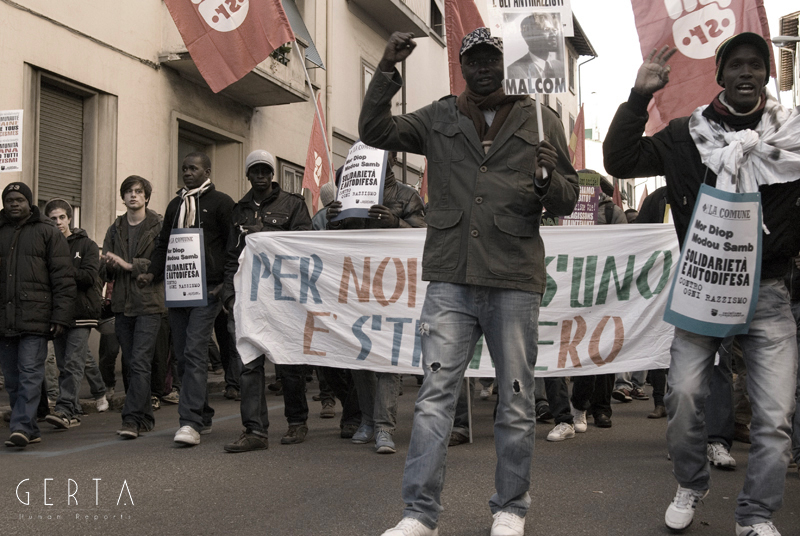 Sabato 17 dicembre 2011, migliaia i cittadini che hanno partecipato al corteo antirazzista per le vie di Firenze. Antirazzisti e antifascisti hanno protestato uniti con la Comunità senegalese che piange due fratelli della città, Mor Diop e Modou Samb.