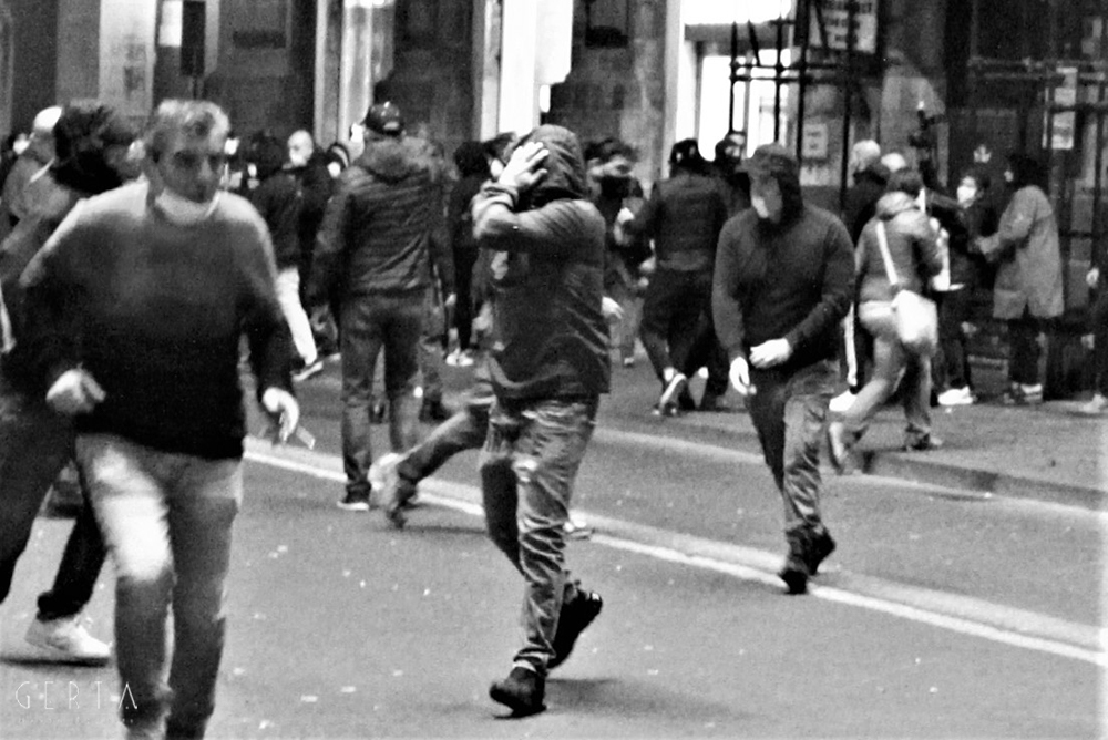 Solo per un caso le bombe carta non hanno ferito nessuno, si trattava di veri e propri ordigni in grado di arrecare danni anche seri se fossero esplosi addosso a qualcuno dei manifestanti oggetto della violenta provocazione. Il tutto è durato una decina di minuti, poi tra gli aggressori sono scoppiate diverse zuffe e il gruppo si è disperso. Alcuni si sono ripresentati più tardi come se niente fosse, li abbiamo riconosciuti perché erano senza mascherina, sia prima che dopo i fatti.