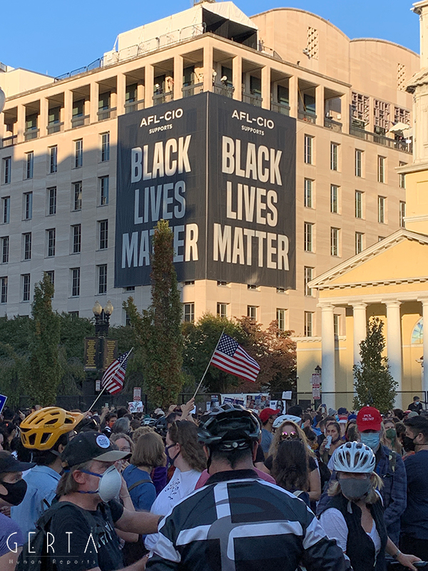La lunga onda del Movimento americano invade le strade di Washington fino al “muro” di una Casa Bianca blindata, rivendicando l’uscita di scena di Trump.