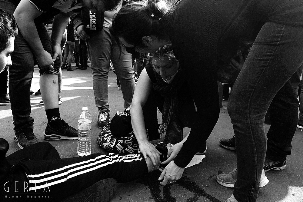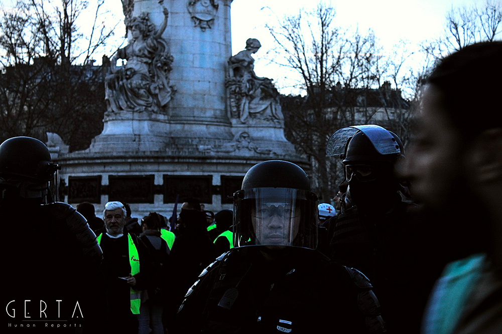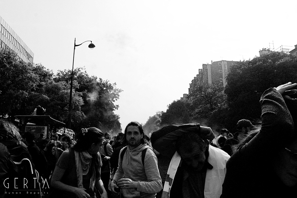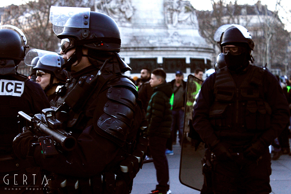 A Parigi, e in tutto il paese, da due anni la gestione dell’ordine pubblico è affidata a questi corpi. Hanno esteso la politica razzista delle banlieue a tutto il territorio metropolitano. Dai gilets jaunes in poi, non ci sono reparti antisommossa che manganellano, ci sono servizi speciali che si vestono da manifestanti e feriscono, sparano, investono, lanciano una granata; poi in caso, arrestano. Due individui ti mettono su un furgone grigio, altri due, con cui hai appena finito di parlare, estraggono uno il fucile, l’altro lo scudo, e tengono puntato. Un altro ancora tiene in mano una granata, minacciando di lanciarla se non ci si allontana.