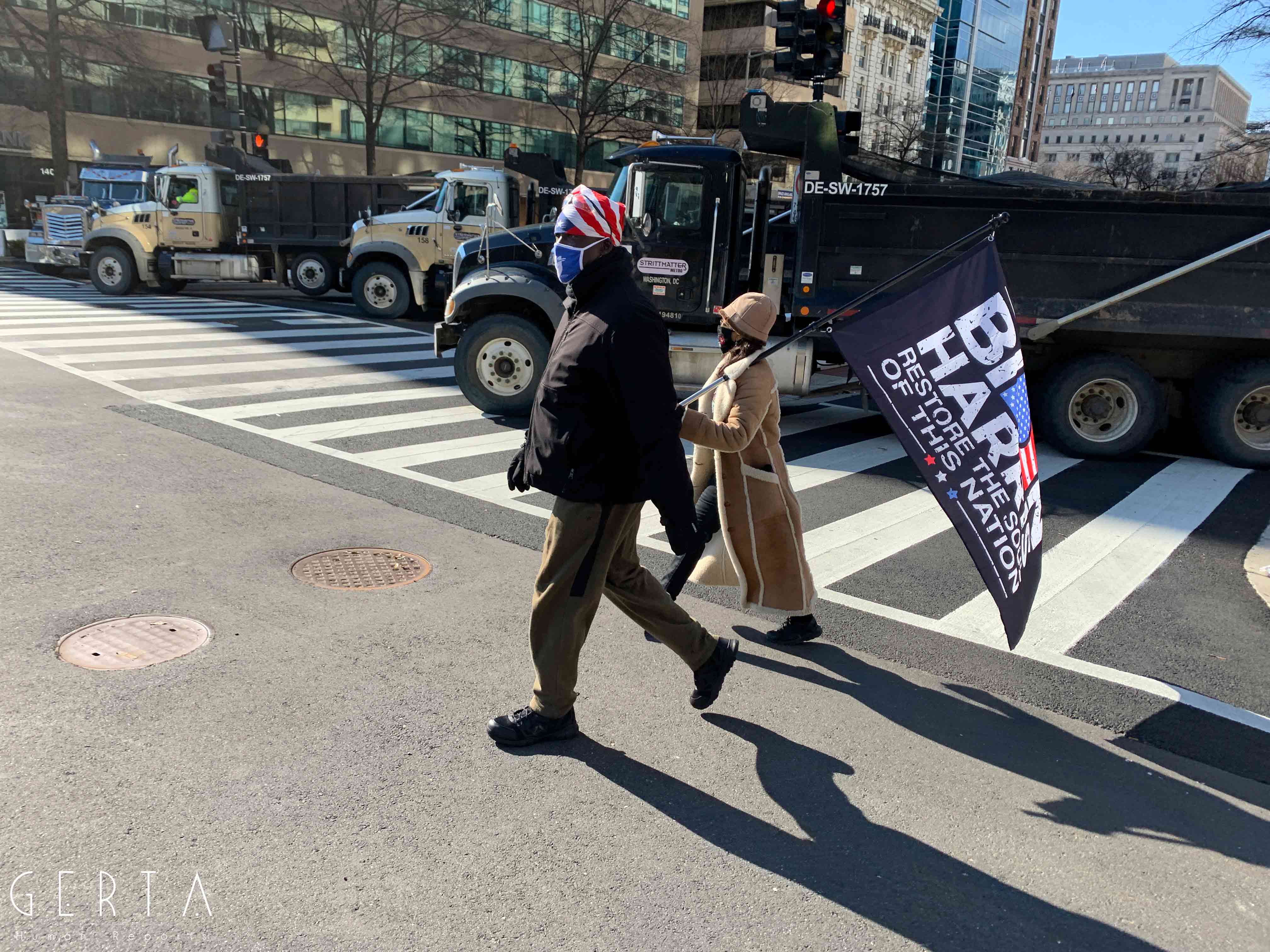Washington ha dunque assunto un aspetto militarizzato, rovesciando drammaticamente l’immagine consueta dove i luoghi del potere – assai più che in Italia – sono solitamente aperti alle visite del pubblico e accessibili ai cittadini comuni. La città si è vuotata: cessate, anche a causa della pandemia, le visite dei turisti che vengono da lontano, persino le persone che vivono a pochi chilometri di distanza in questi giorni hanno evitato di recarsi nella capitale. Per quello che si può intuire, anche i residenti che potevano essere ospitati al di fuori della zona recitata, hanno preferito lasciare per qualche giorno le loro case. La massiccia presenza di truppe e mezzi miliari, delle macchine della polizia, dei posti di blocco in una città completamente deserta, trasmette l’immagine di uno stato di assedio, come se il temuto colpo di Stato fosse effettivamente avvenuto. Forse anche per questo, chiaramente eseguendo ordini precisi, i soldati si dimostravano molto cordiali con i pochissimi visitatori che per curiosità si avvicinavano alle recinzioni, cercando di trasmettere un’irreale sensazione di “normalità”, in uno scenario che niente aveva di normale.