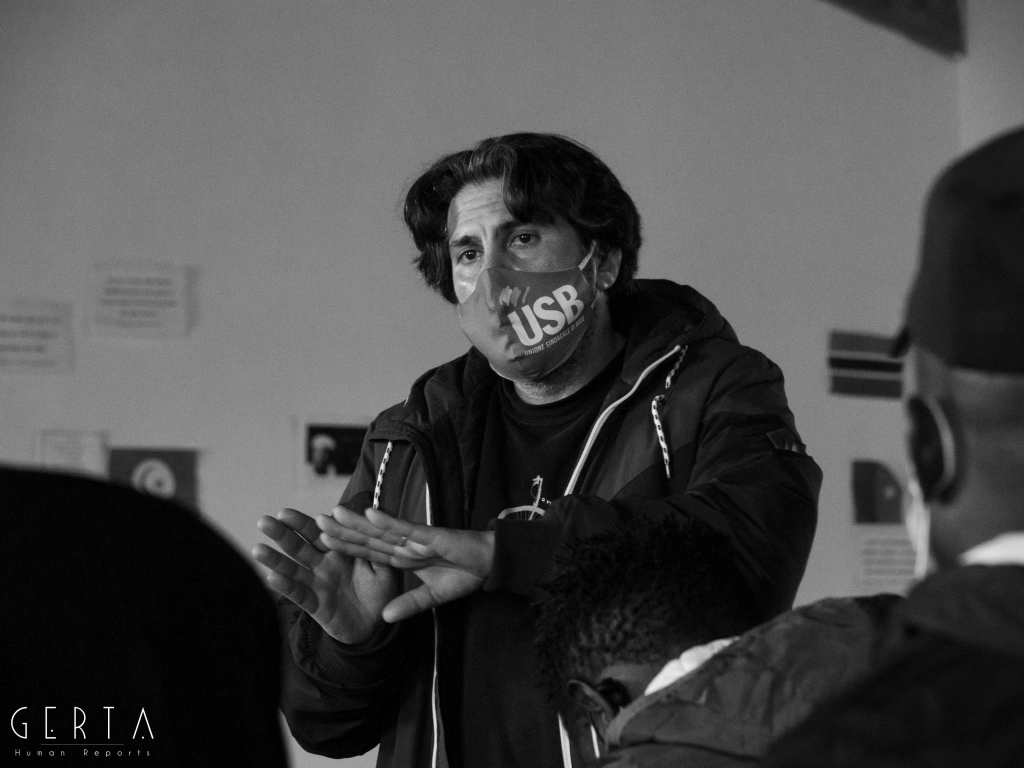 Durante l’incontro si è rivolto ai ragazzi anche Stefano Gianandrea De Angelis, dirigente del Coordinamento dei Lavoratori Agricoli e della Federazione del Sociale dell’USB nazionale. «Spiegateci quali sono i vostri problemi e risolviamoli insieme» asserisce Stefano, «Smontiamo insieme il mito secondo cui voi rubate il lavoro agli italiani! Voi siete questo paese e il sistema ha bisogno di voi. Il padrone e il capitale ha tutto l’interesse di tenervi assoggettati a questo sistema intollerabile. L’invisibilità di un uomo, di una donna, di un minore è funzionale ai profitti poiché tale situazione annulla i vostri diritti. Diritti che dovrebbero far parte, ormai, al patrimonio genetico degli italiani ma che invece arretrano costantemente, cedendo alle illusorie sirene razziste di chi si alterna in parlamento».