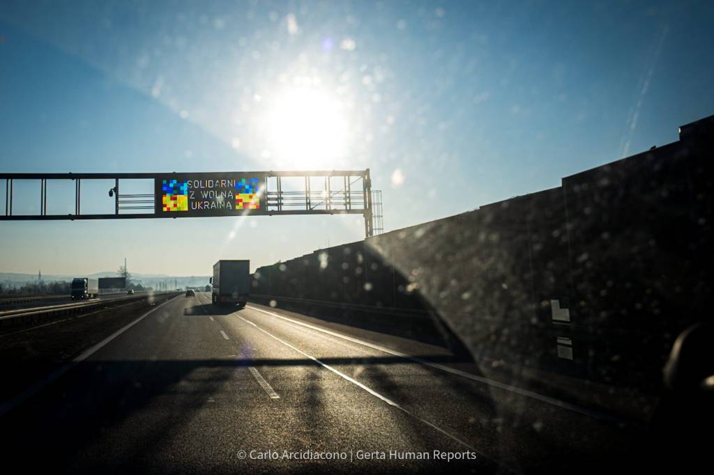 Lungo i kilometri dell’autostrada, immersa in un panorama stupendo come sa essere il territorio polacco, vediamo piccoli ma confortanti segnali di solidarietà e fratellanza per il popolo ucraino. Grandi sorrisi ci strappano i bambini che ci salutano dai finestrini delle auto dei genitori.