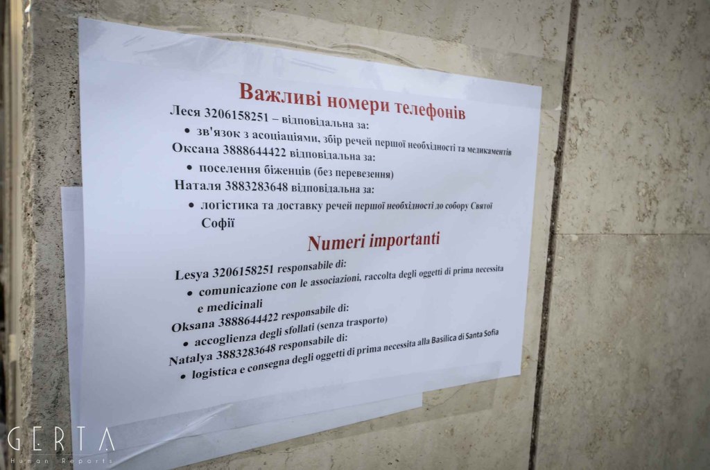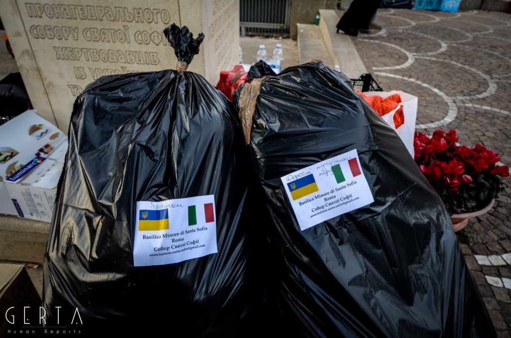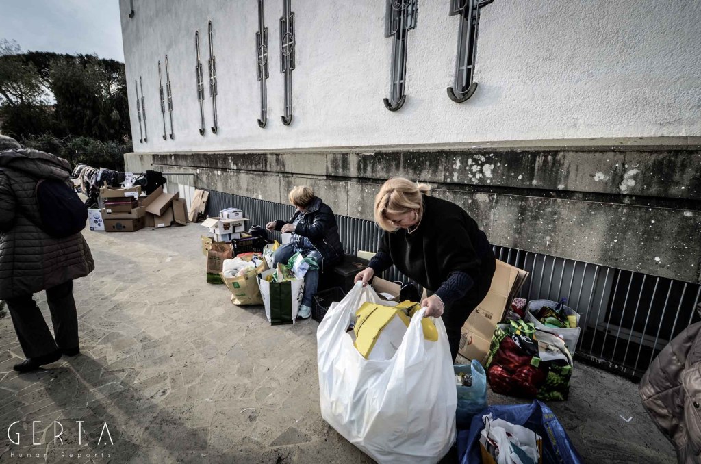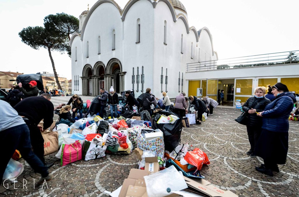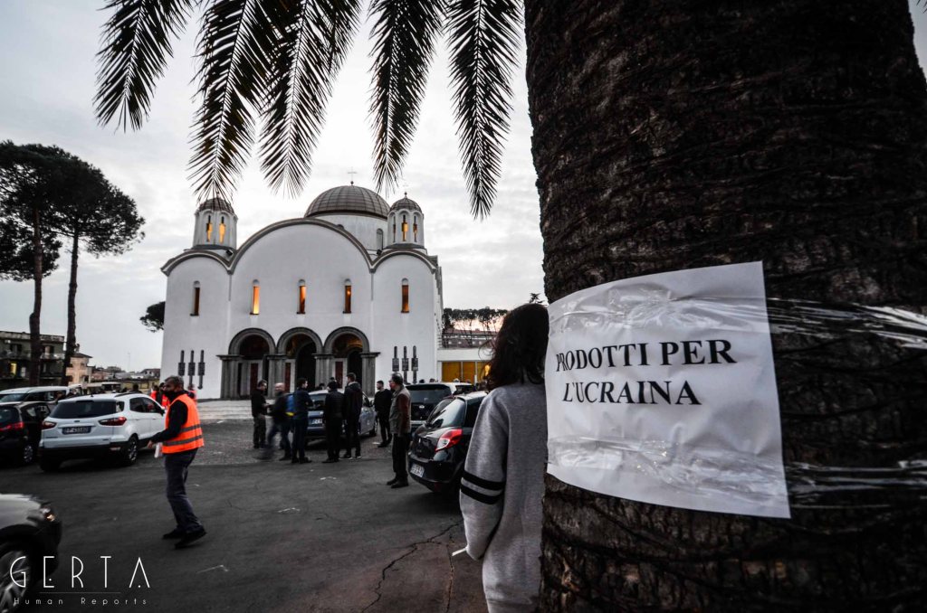Alla chiesa di Santa Sofia a Roma, sede centrale della Chiesa della Comunità Ucraina in Italia (via Boccea, 478), c’è molta fretta. Il flusso degli aiuti che arrivano dagli Italiani, ma anche dagli Ucraini stessi e da altre comunità (come ad esempio quella Venezuelana), è talmente imponente e costante che è stato necessario chiamare i volontari della Protezione Civile e i vigili Urbani per gestire il traffico di auto e lo scarico di tutto quello che viene donato.