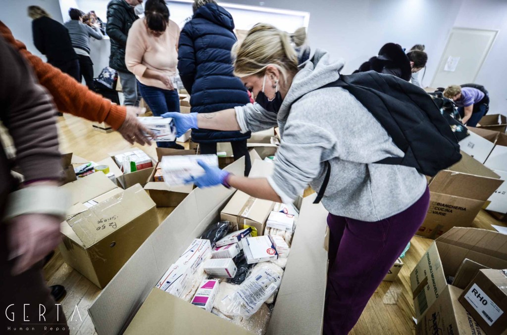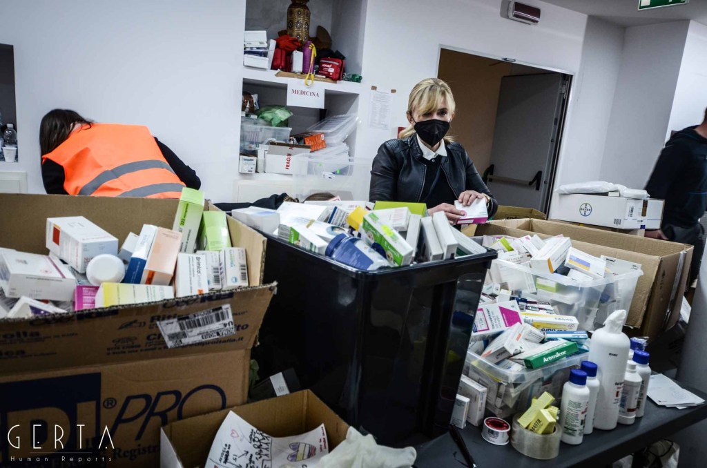 C’è molta commozione, ci sono lacrime, i giovani cresciuti qui in Italia sono increduli. Ma soprattutto si corre. Nel seminterrato della Chiesa la sala viene usata per dividere cibo e farmaci. Proprio ai farmaci viene dedicata particolare attenzione, attraverso l’aiuto e la catalogazione da parte di persone competenti.
